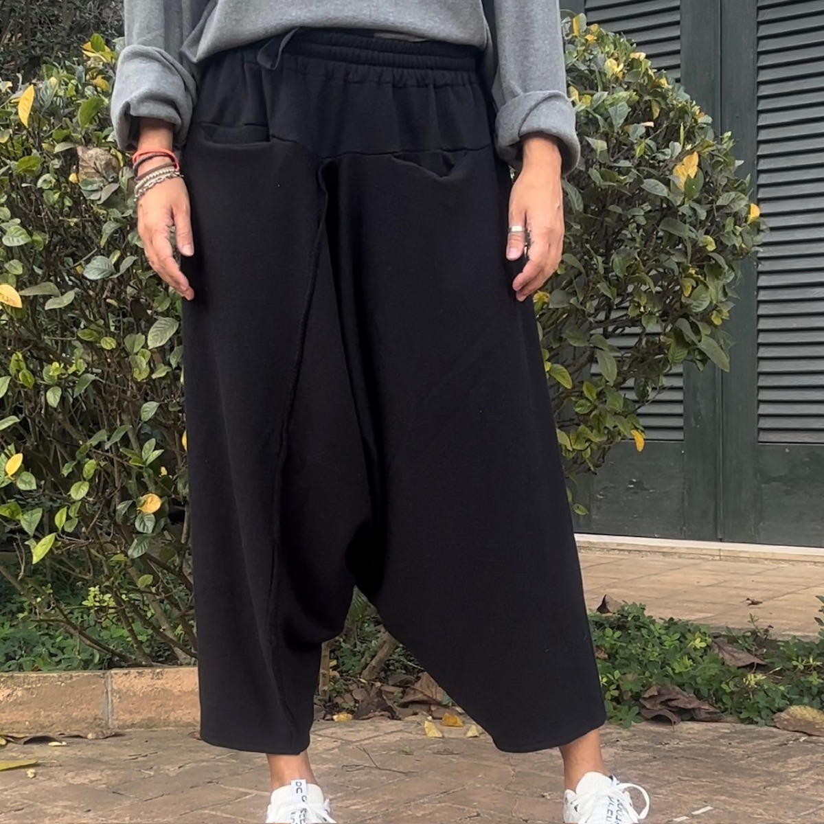 Calça saruel em moletom com elástico na cintura e cordão interno para amarração