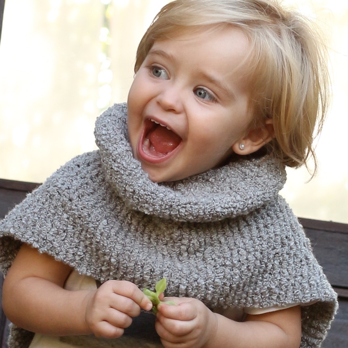 Pelerine gola em tricot! Recorte nas costas para ficar bem confortável e não tirar a mobilidade da criança! Feito à mão em boucle