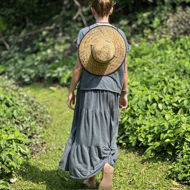 Saia longa com babado e lastex na cintura