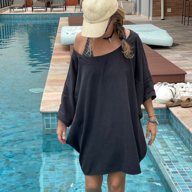 Saidinha tipo camisetão bem largona! Perfeita para praia ou piscina, mas fica muito legal tb usando com calça 😉