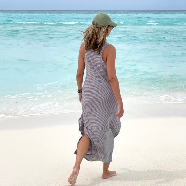 VESTIDO regata em malha listrada com 02 fendas laterais